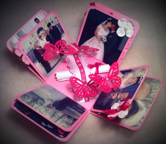 - Альбом для фотографий в красивом переплете. Такой подарок на свадьбу сестре можно выполнить своими руками, если есть навыки и необходимые материалы.