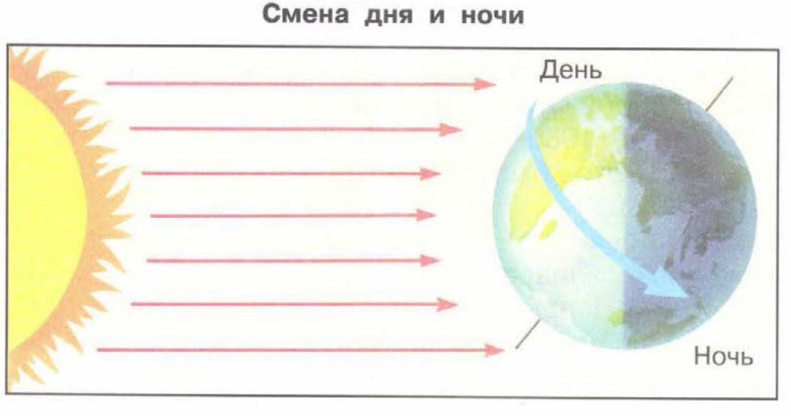 Она вращается вокруг своей оси. — Сначала одну её часть, а затем другую. — День — Ночь — Из-за вращения Земли вокруг своей оси. — Солнца -Земная ось наклонена, одна часть ближе к Солнцу, а другая дальше. -Медленно. — Происходит смена времён года. |