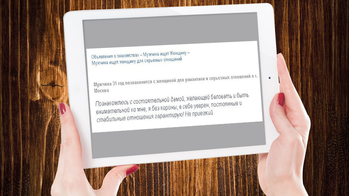 Здесь недостаточно быть посредственностью. «Надо иметь увлечение — настолько странное, что больше в мире такого не найдешь. Первое мое свидание с этого сайта было с парнем, который увлекался астрономией и клавесинной музыкой XVII века».